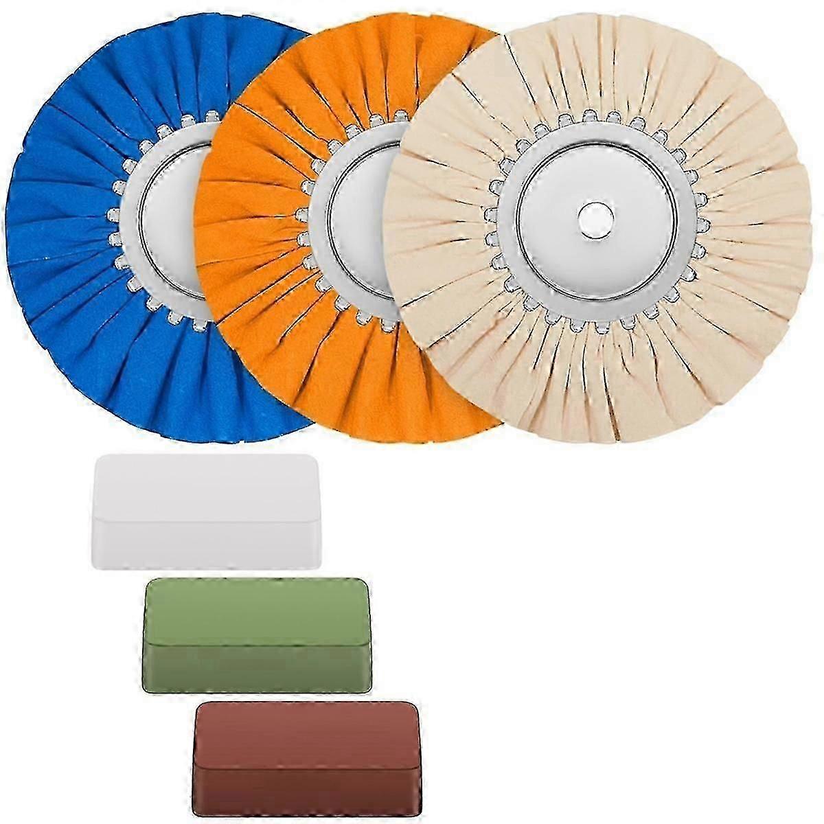 6Pcs 8Inch Airway Buffing Wheel Aluminum Wheel Polishing Kit Safe Flange in Diameter 5/8 Inch Arbor
