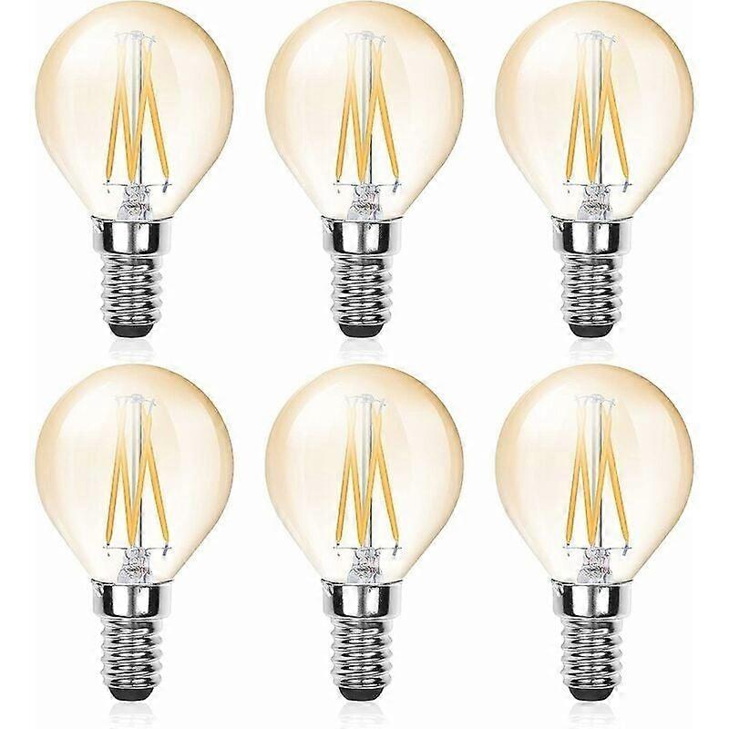 6 Pcs E14 LED Filament G45 Bulb, 4W (40W Equivalent), E14 Dimmable Candelabra, Amber Glow, Vintage Cool White 6000K Bulb, 220V 380lm, Vintage Lighting