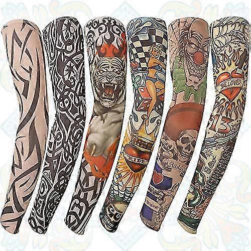 6 Pcs Fashion Nylon Fake Temporary Tattoo Sleeves Arm Stockings Halloween Tattoo Soft For Men Women