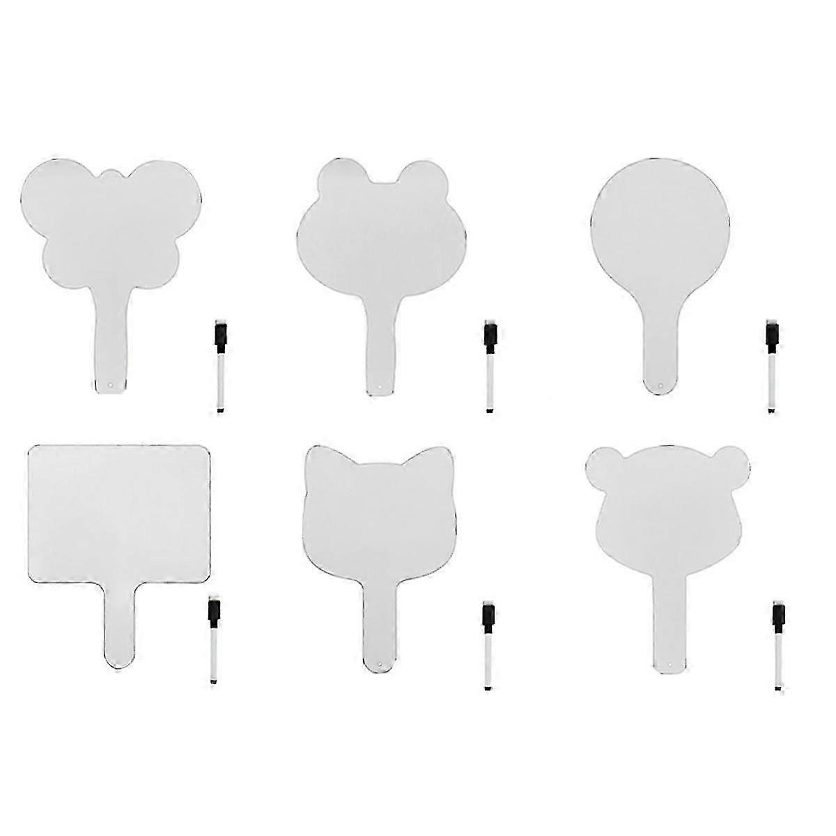 DRY ERASE - Our 6 pack of double sided whiteboard answer paddles provide a spacious of writing space with a comfortable handle that is easy for kids or adults to handle.Size:20.4x24.5cm,17.5x30cm,20.8x30.5cm,20x26cm,19.8x27.8cm,21x29.5cm. QUALITY CRAFT - Dry erase answer paddles are 3mm thick. Sturdy enough to be used daily year after year, but light enough for even the smallest of hands to during class. MAINTAIN ORDER - Keep your students, co-workers or class attendees quiet while they write their individual answers or votes. Keep shouting and chatter to a minimum with brilliant individual boards. MULTI- - Answer paddles are a great addition to grade school, high school or homeschool classrooms as well as for continuing education classes or business training sessions. MAKES A GREAT GIFT - Give a practical gift to first year teachers or make a fun gift basket for the season. Colour:White Material:Wood Size:Approximately 20.4x24.5cm, 17.5x30cm, 20.8x30.5cm, 20x26cm, 19.8x27.8cm, 21x29.5cm. Package Contents: 6 x Dry Erase Boards 6 x pen(Colors and styles are random, no specification is accepted.) Only the above package content, other products are not included. Note: Light reflection and different displays may cause the color of the item in the picture a little different from the real thing. The measurement allowed error is +/- 1-3cm.