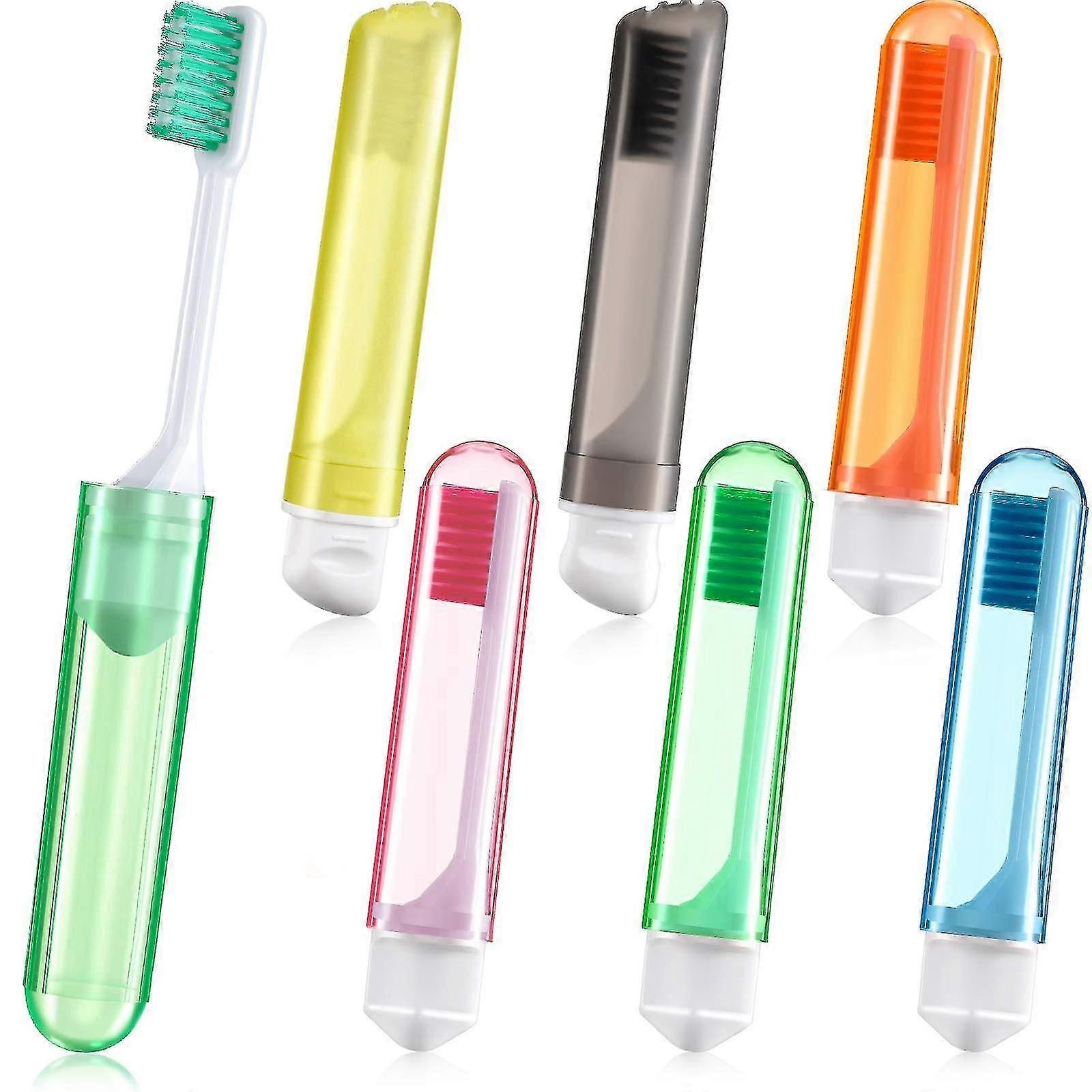 Pack of items: you will receive 6 pieces foldable travel toothbrushes in different color, including green, blue, orange, pink, yellow and black, 1 piece of each color; Abundant quantity and diverse color that can meet your daily needs and replacement; Different colors can be easily identified, which means there will be no confusion, especially for large familiesPortable and foldable: these mini travel toothbrushes can be put into the plastic handle cover when not in use to protect the toothbrush from dust pollution, and they can be easily keep in your pocket, wallet, desk drawer, and wash bag and moreQuality material: these travel toothbrush are main made of sturdy and durable plastic, come with firm grip handle, gentle and non-irritating; Each folding toothbrush for travel is made of soft, fine hairs, which can effectively protect gums and effectively clean your teethThoughtful design: there are 2 small holes in the bottom of the travel toothbrush holder to prevent water accumulation, keep the toothbrush dry at all times; Equipped with a toothbrush box to prevent dust from getting on the toothbrush, provide you with a clean and comfortable brushing experienceWidely applied: these toothbrushes are adopts shrinkable design, so that they can be folded when not in use, pocket size and portability which makes these folding toothbrushes are widely applied in travel, business trip, camp, wild adventure and so on