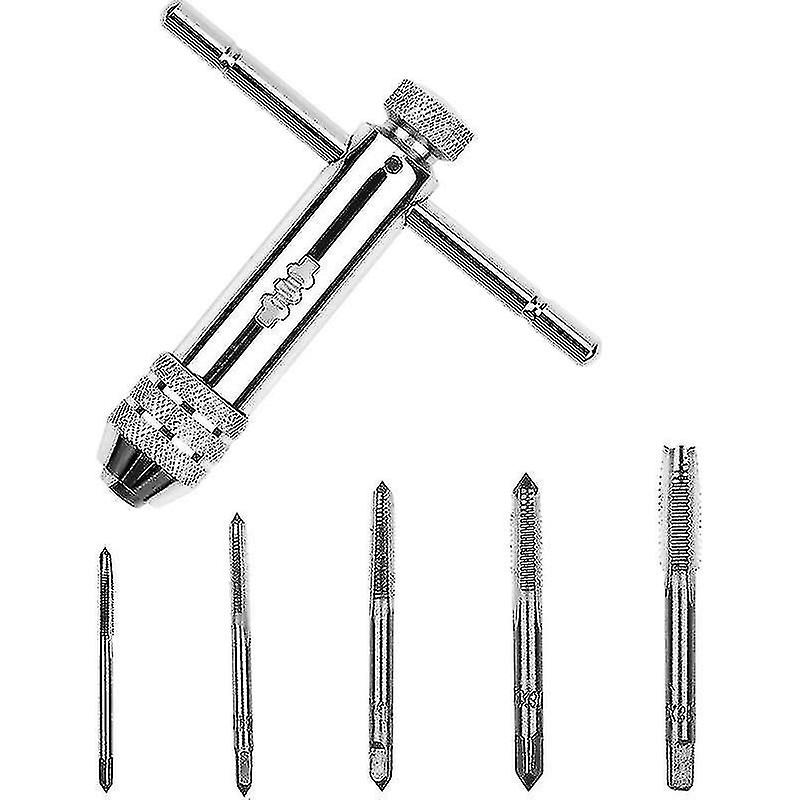 6-Piece Adjustable T-Bar Ratchet Tap Holder Set with M3-M8 Thread