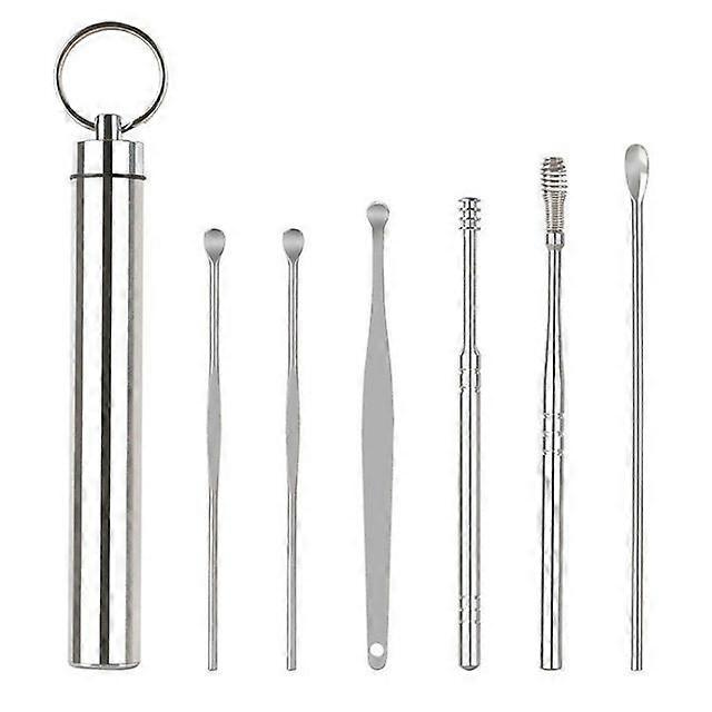 Description: Product Name: Earscoop 6-piece set Product material: carbon steel Purpose: To remove earwax Notices:1. Please put the product out of reach of children. 2. Children must use the product under the guidance of adults. 3, This product is made of pure stainless steel material refined, can be soft dry cloth wipe clean or clean water, can also be put in alcohol disinfection