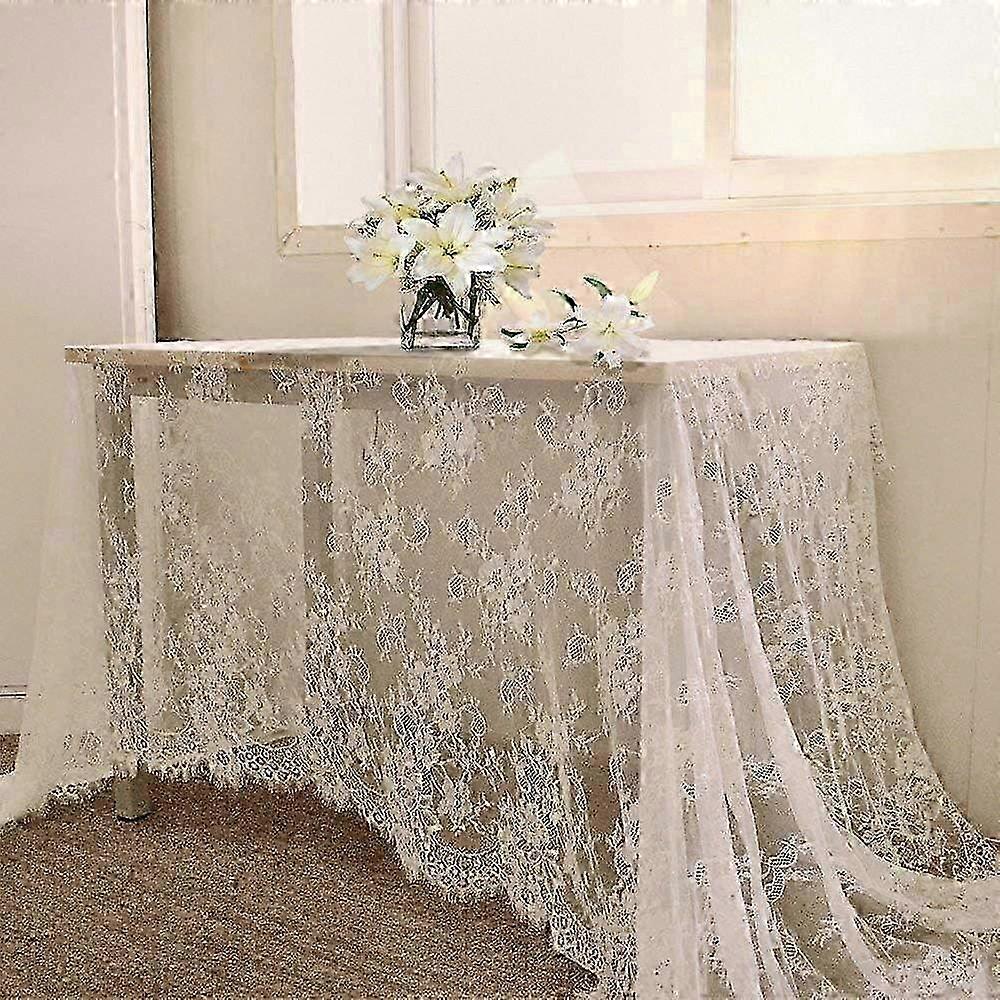 60 X120 Inch Elegant White Wedding Table Cover Lace Table Topper Vintage Embroidered Design