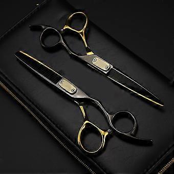 6.0 بوصة أسود وذهبي باو تصفيف الشعر مقص حلاقة مقص شقة الانفجارات الأسنان مقص مقص رقيقة