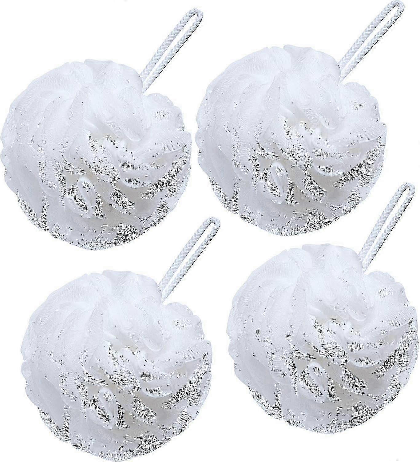 60g Large Bath Poufs Mesh Body Scrubbers for Men & Women Set of 4 in White