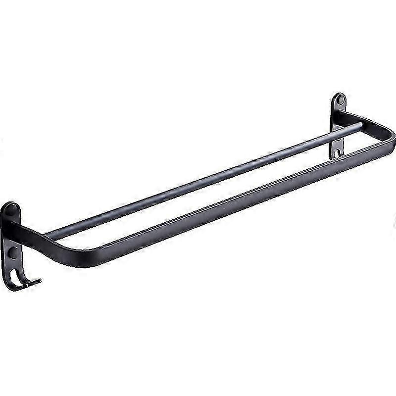 60 cm Wall Mount Black Towel Rack Aluminum Double Rod Towel Bar with Hook for Home Hotel Bathroom S js