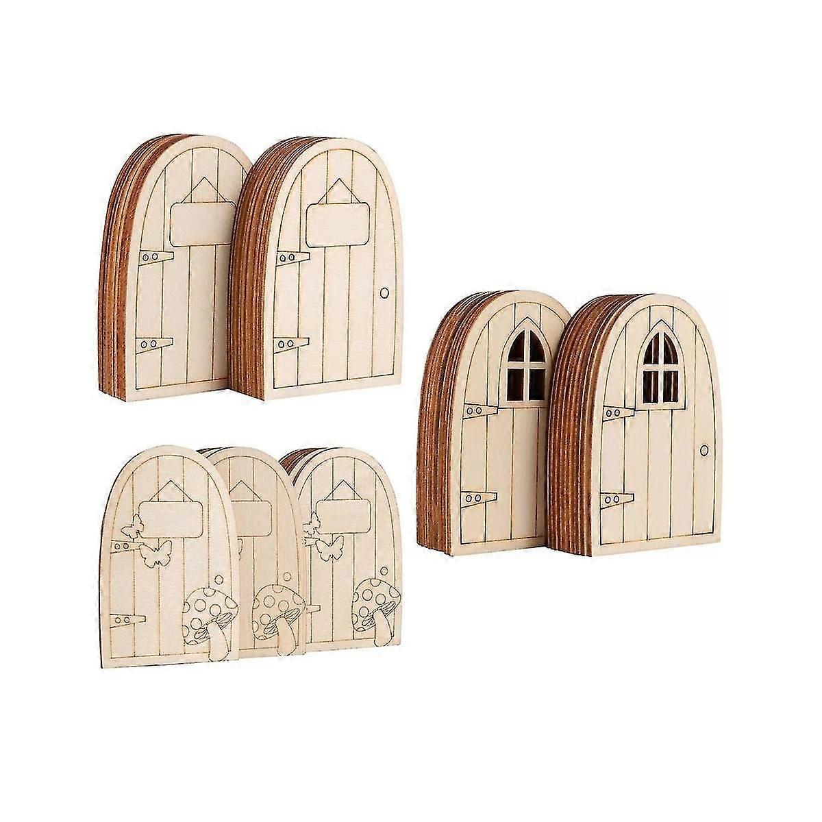 60pcs Unpainted Wooden Fairy Door Blank Garden Door Hollow Out Wood Elf Door For Diy Christmas Craf