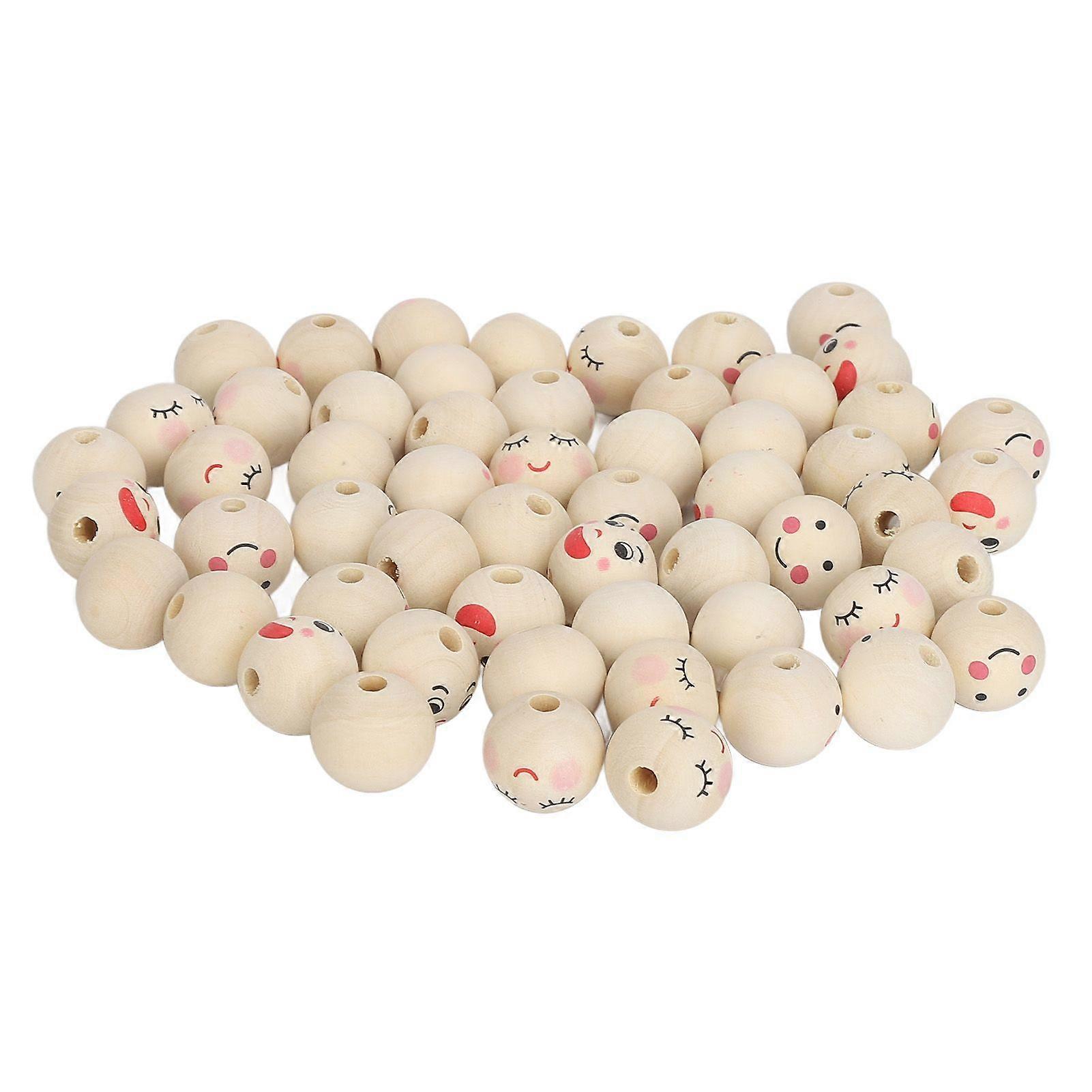 60pcs Printed Round Wooden Bead 20mm DIY Wooden Craft Bead with Large Hole for Necklace