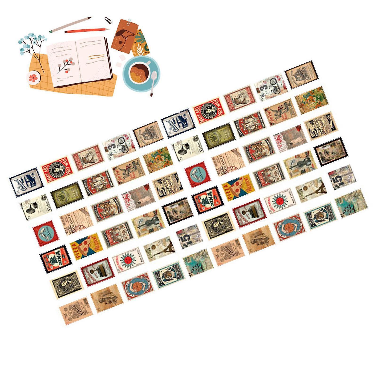 60pcs Stamp Stickers Vintage Postage Stamp Stickers Decorative DIY Stamp Stickers for Journal Note Book Phone