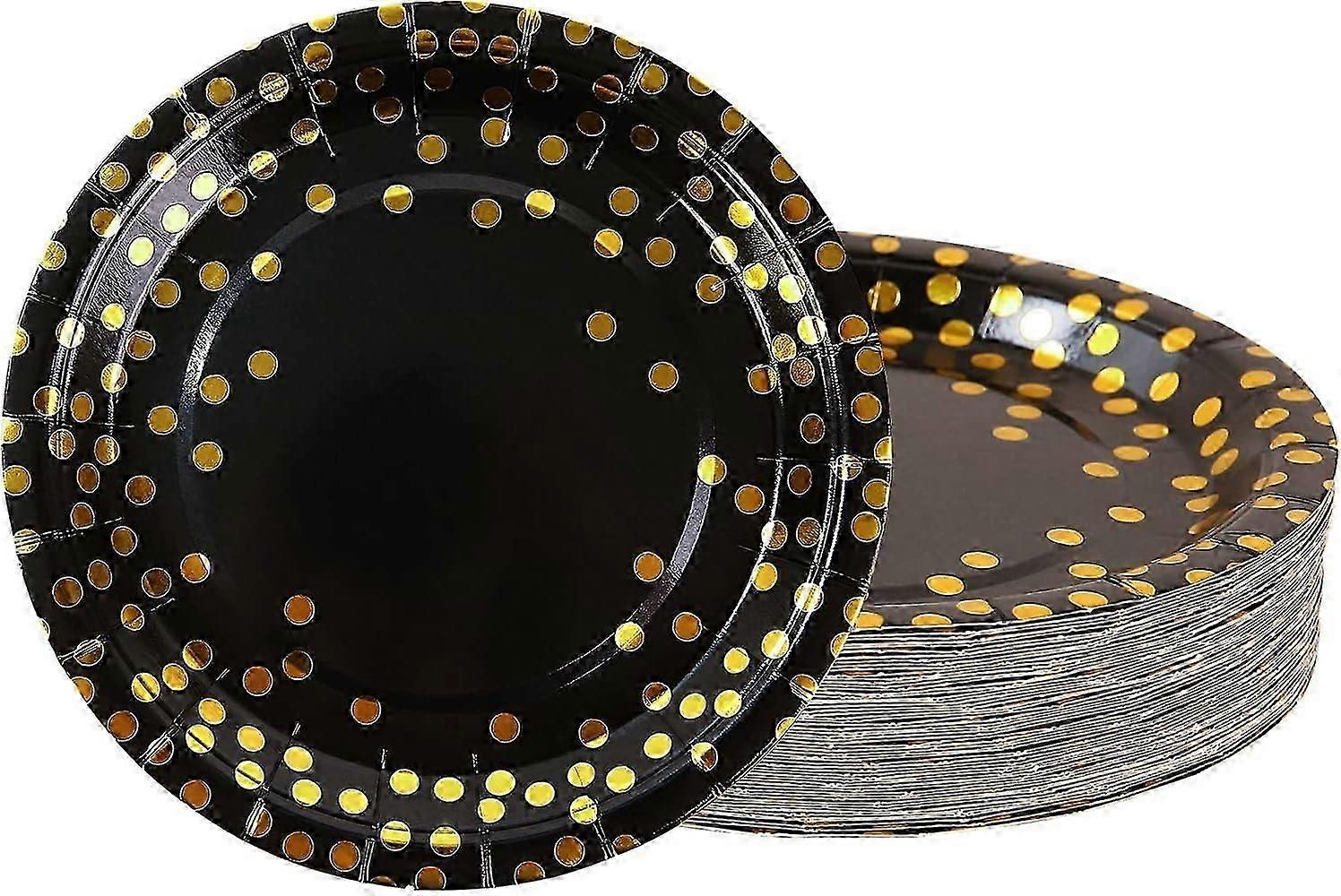 60 Pcs Paper Plates 7 Inch Party Plates Disposable Black and Gold Party Tableware Set for Anniversaries Christmas Shower Wedding