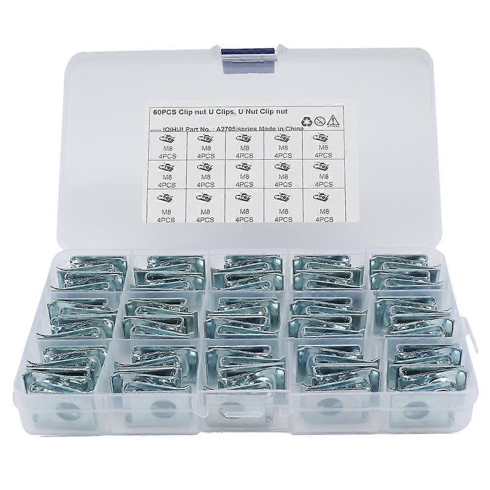 60pcs M8 Motorcycle Fairing Bodywork Panel U Clips Manganese Steel Spire U Clip U Nut Fasteners Silver