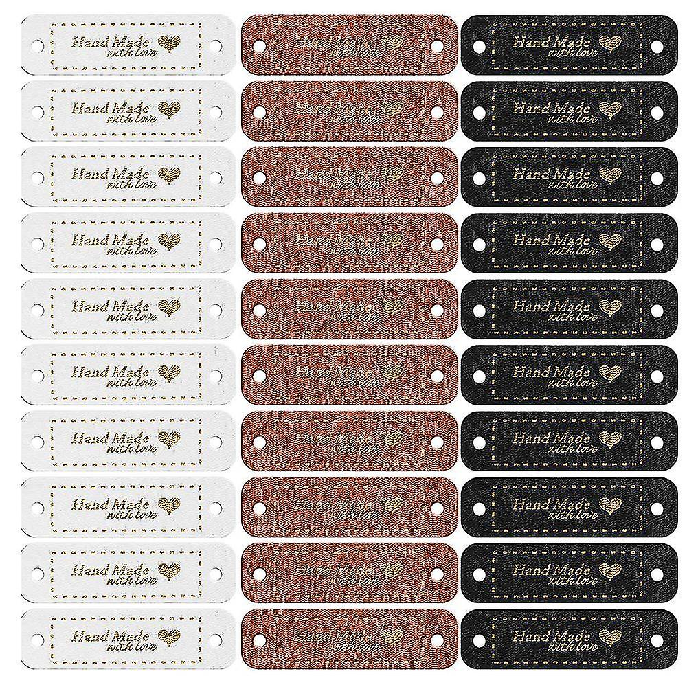 60pcs Handmade Pu Leather Tags Faux Leather Sew On Labels Embellishment Knit Accessories With Holes x
