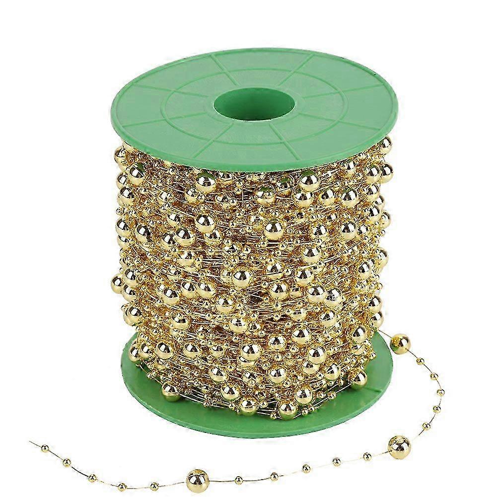 60m/roll Electroplating Pearl Wire Beads Garland String DIY Wedding Decoration 3mm+8mm(golden)