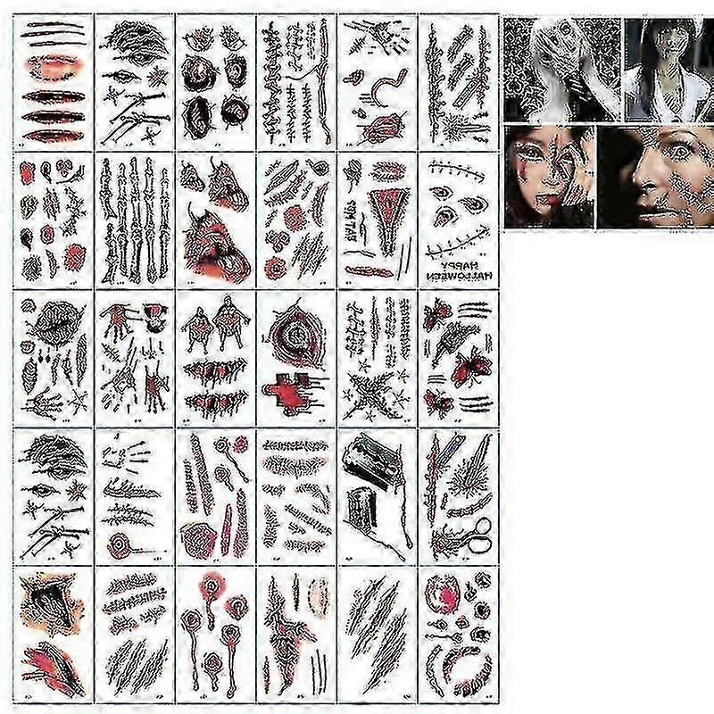 60 Sheets 3d Zombie Scar Tattoos Fake Scars Bloody Costume Makeup Halloween Decoration Horror Wound Scary Blood Injury Sticker Halloween Party Decorat