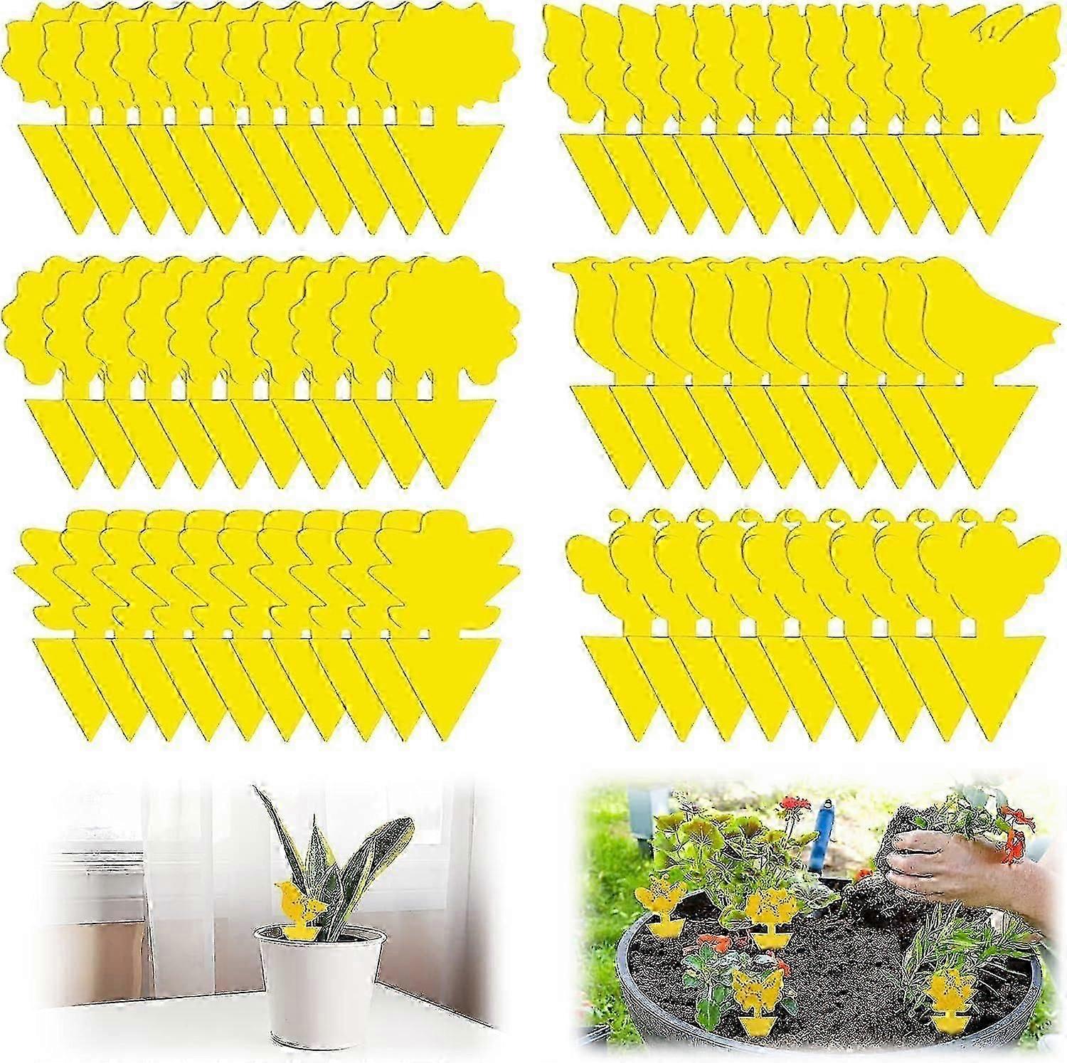 60PCS Yellow sticker fungus gnats, yellow trap, fungus gnat, yellow plates, plug-in or hanging, yellow sticker against aphids, thrips, mining flies, f