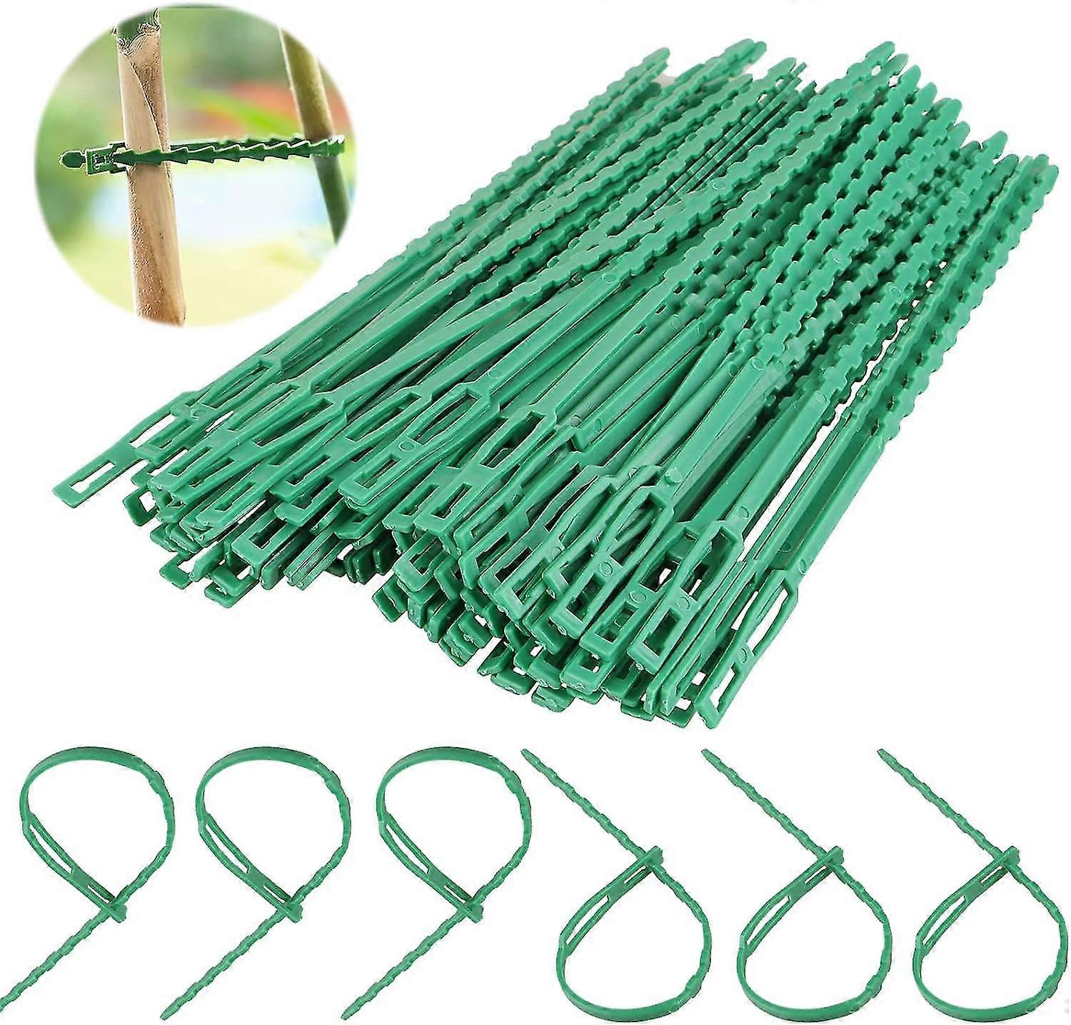 [REUSABLE] Made of high quality plastic, the garden plant ties are smooth and burr-free, won't hurt the plants, have good flexibility, strong and durable, not easy to break and resistant to sun and rain, not easy to deteriorate, can be easily unbuckled and can be used for a long time until the next season. [ADJUSTABLE LENGTH] Each plastic garden ties measures 17.5 cm/6.8 inches, can be easily unlocked and adjusted when the plants are mature, adapt to most types of plant thickness, perfect for plant support in the garden. [CONVENIENT & QUICK] Heavy duty shrub ties are quick and easy to use, after use the tie to circle the stem and the rod together, just adjust the buckles to the right position, eliminating the need for cumbersome tying of ropes or wires, no need to use scissors or other tools, it is also suitable for securing the plants to stakes or trellises to avoid plants growing around. [STURDY] Fishbone design plant ties with serrated edges on each tie prevents the ties from slipping when knotted, minimizing unnecessary movement that may cause damage or breakage to plants, this tree tie is a must-have for gardening enthusiasts. [WIDE APPLICATION] These garden ties are widely used for trees, flowers, potted plants, orchards, gardens to help plants adjust to the correct direction of growth, and also to organize messy office cables and USB cables. -Product Dimensions: 17.5cm/6.8 inch -Material: Plastic -Color: Green Package include:600 x Plant Ties.Products from KJ's store