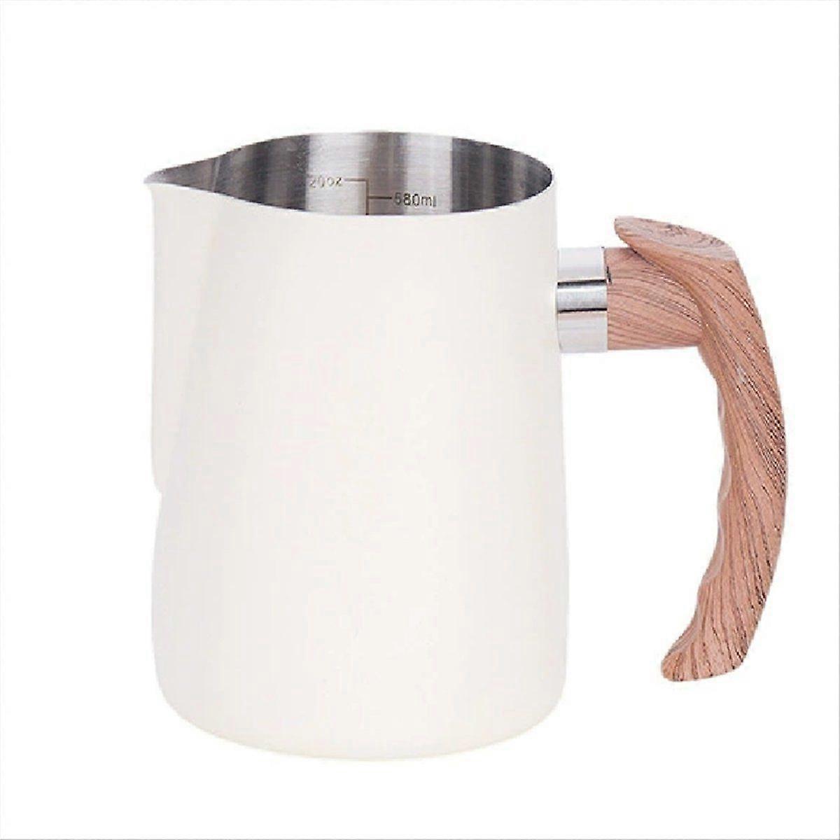600ml Espresso Milk Frothing Pitcher Wooden Grain Handle Milk Jug Espresso Cup Cappuccino Pitcher C