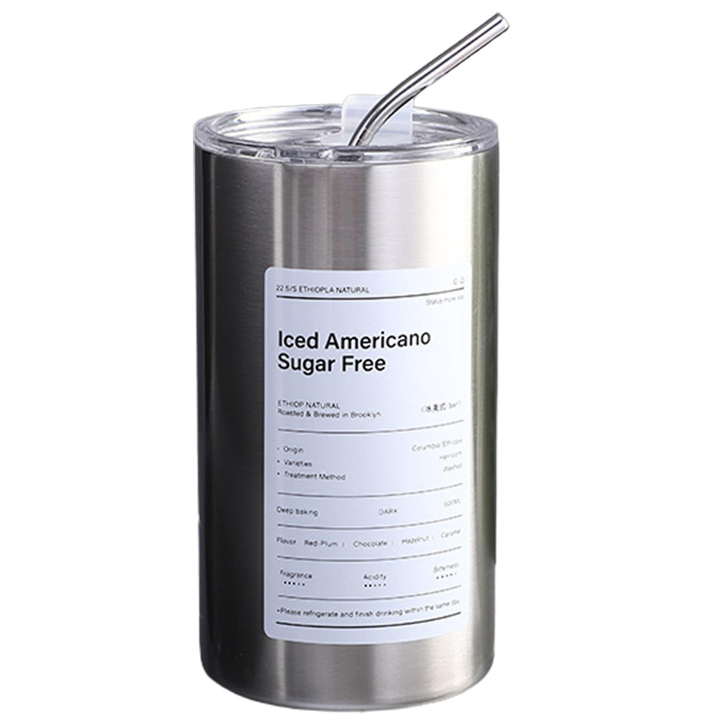600ml Coffee Mug Effective Insulation Good Sealing Double Layer with Straw Fruit Juice Milk Drinking