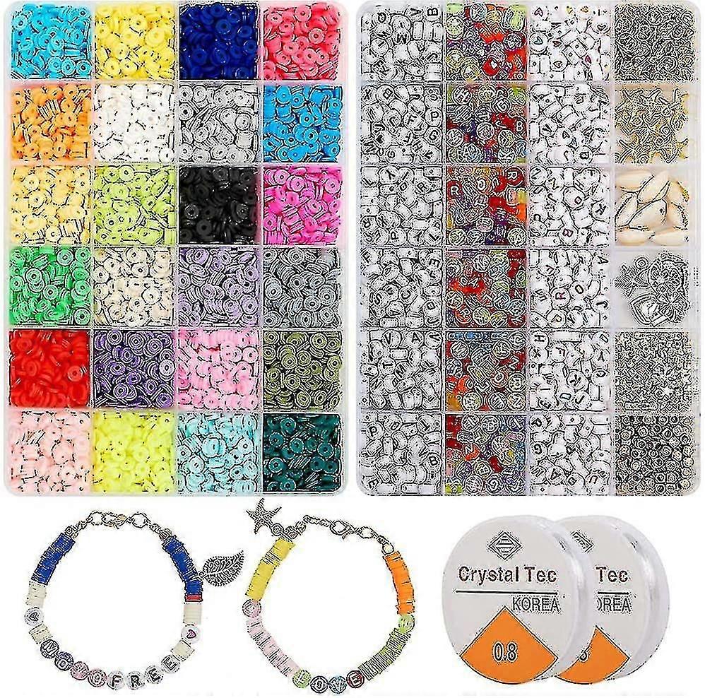 6000 Pcs Clay Heishi Beads Diy Jewelry Making Kit With 6mm Flat Round Clay Spacer Beads