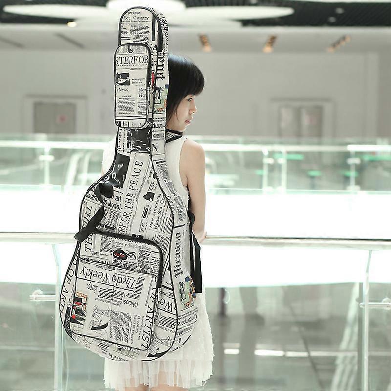 600D Water-resistant Oxford Cloth Newspaper Style Stitched Padded Straps Gig Bag Guitar Carrying Case for 40Inchs Acoustic Classic Folk Guitar