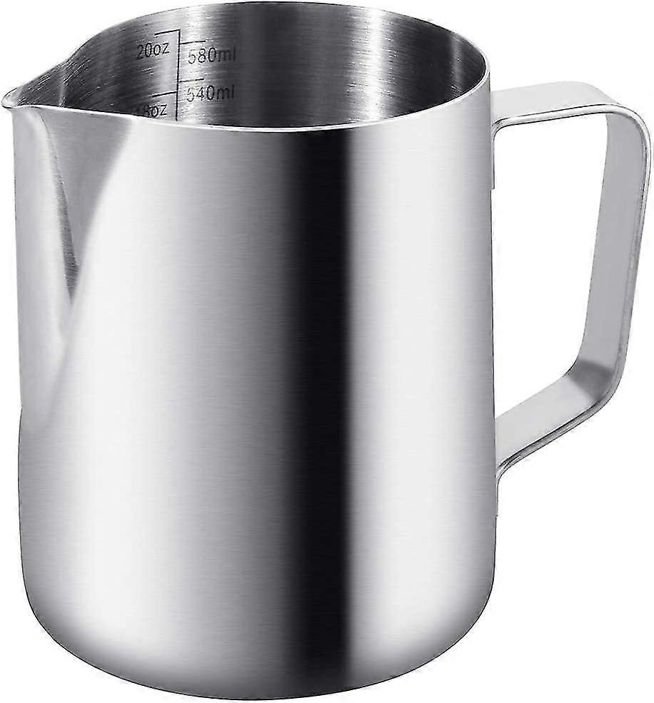 600ml / 20oz Milk Jug 304 Stainless Steel Milk Jug Engraved Graduated Inside For Foaming Milk, Cappuccinos, Juices Or Other