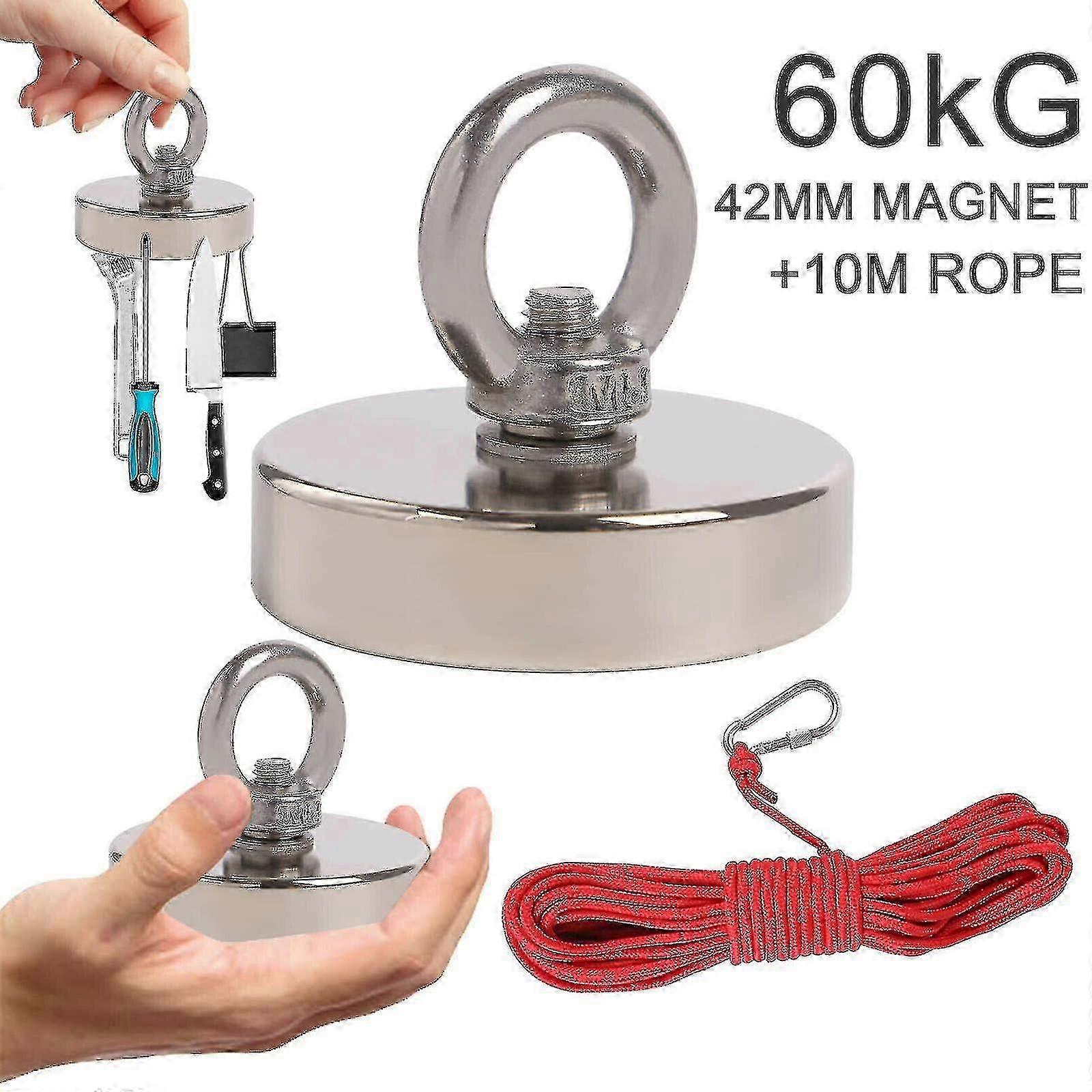 60kg Pull Salvage Strong Recovery Magnet Fishing Treasure Neodymium With Rope -