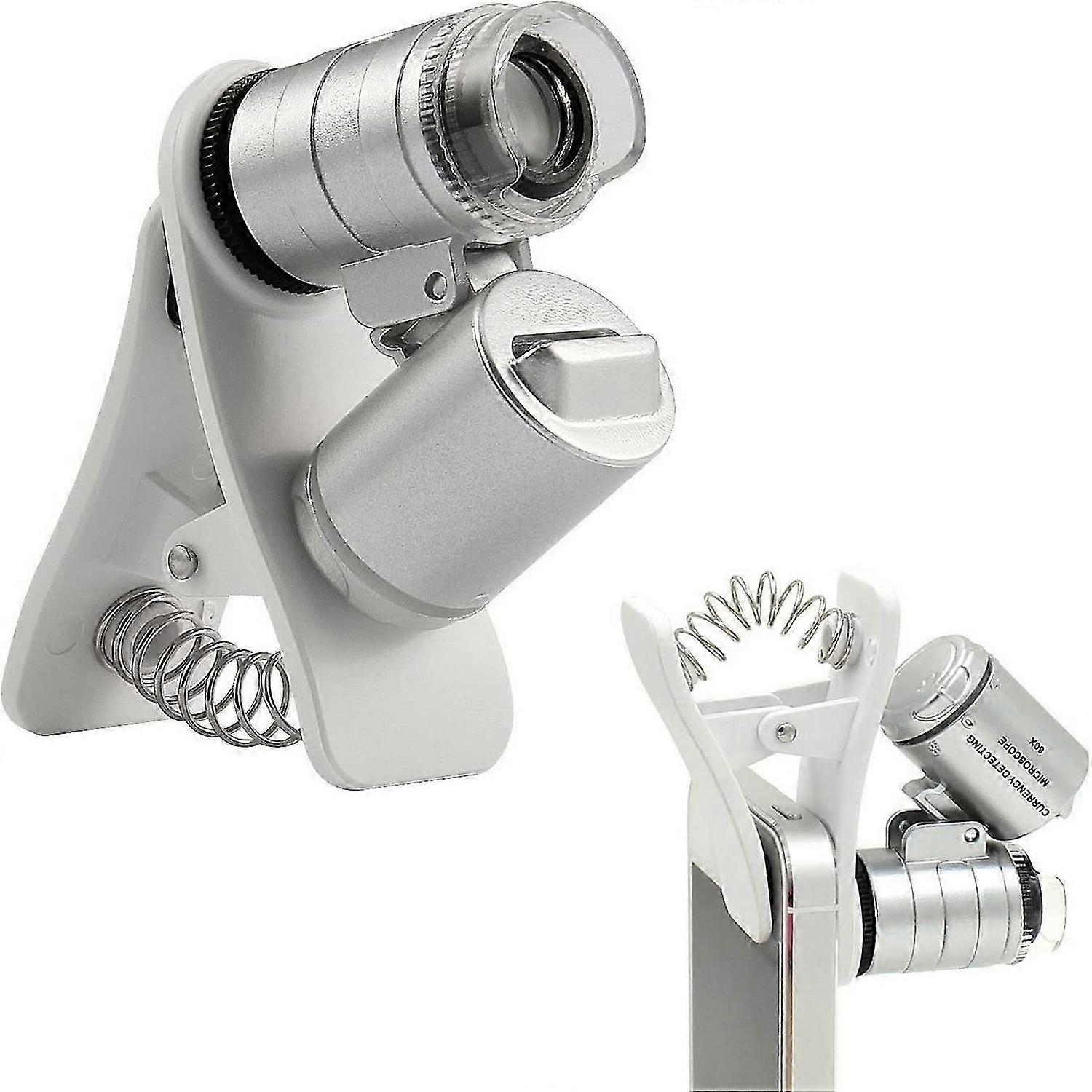 60X Clip-On Type Mini Microscope Illuminated Jeweler LED UV Lens Loupe with Clamp