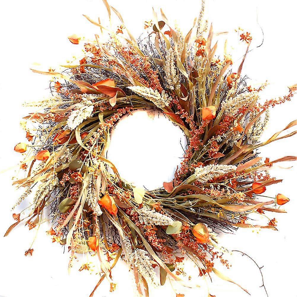 62cm Fall Front Door Wreath Harvest Gold Wheats Ears Circle Garland Autumn Wreath For Front Door