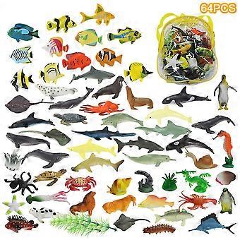 64 Piece Ocean Sea Animals Toys Set Realistic Under The Sea Life Figure Bath Toy Party Favors Toys For Boys Girls Kids
