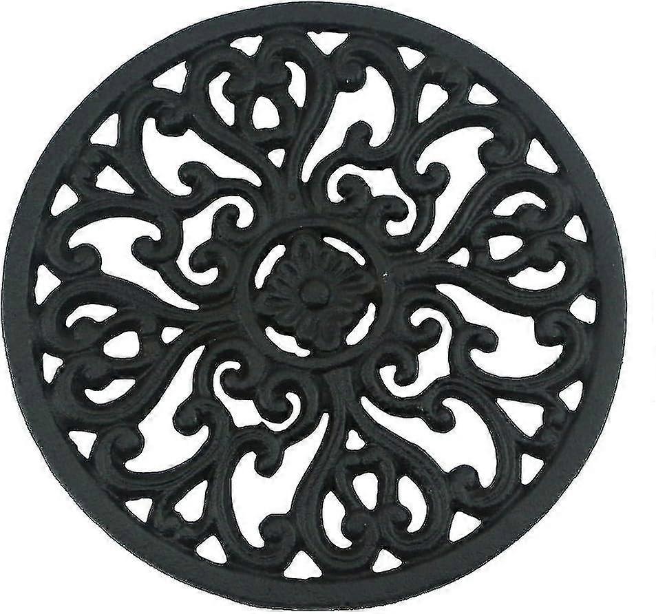 6.7" Cast Iron Trivet, Decorative Round Trivet Mat Hot Pot Holder Pads With Vintage Pattern And Rubber Pegs
