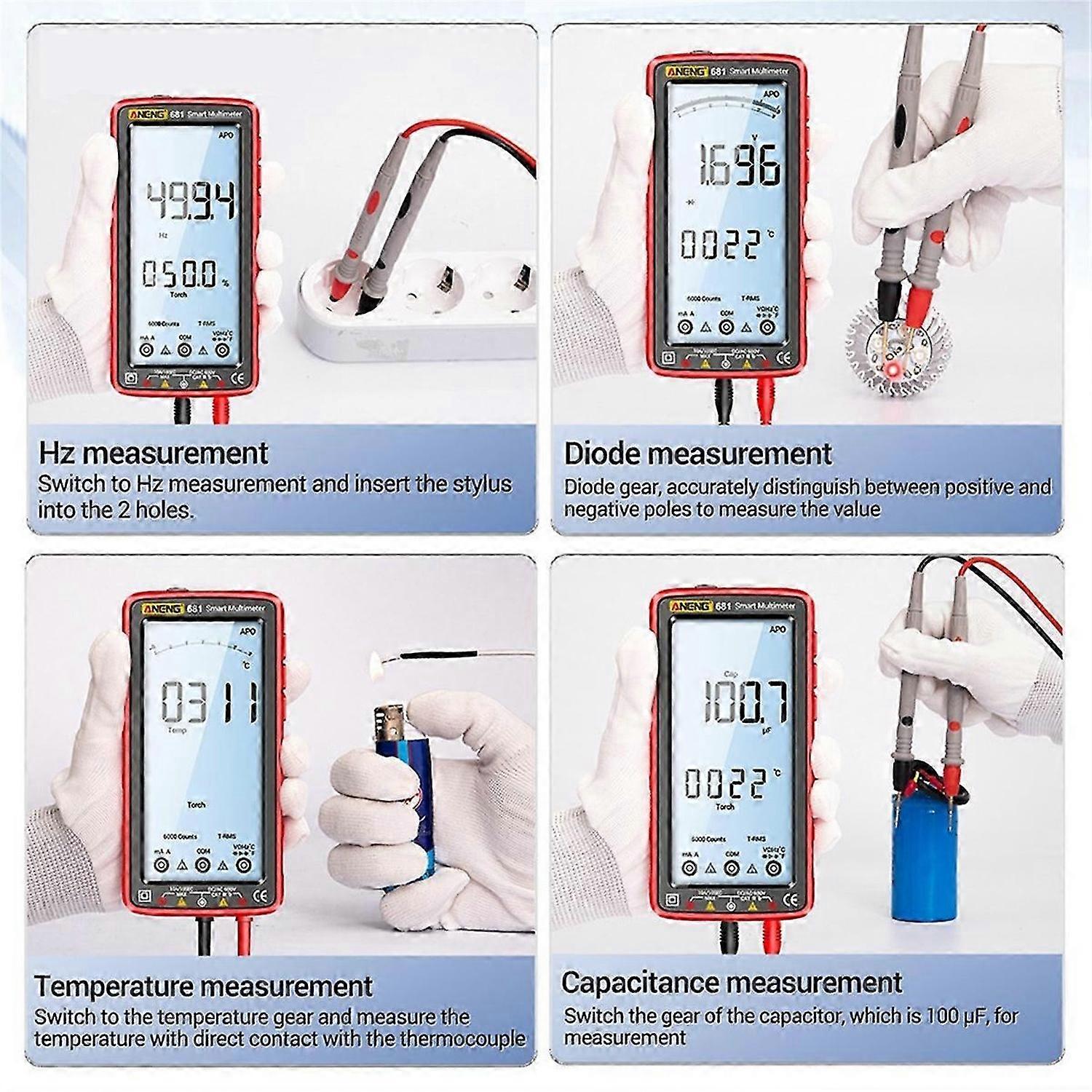 681 Digital Multimeter Non-Contact Voltage Tester Red