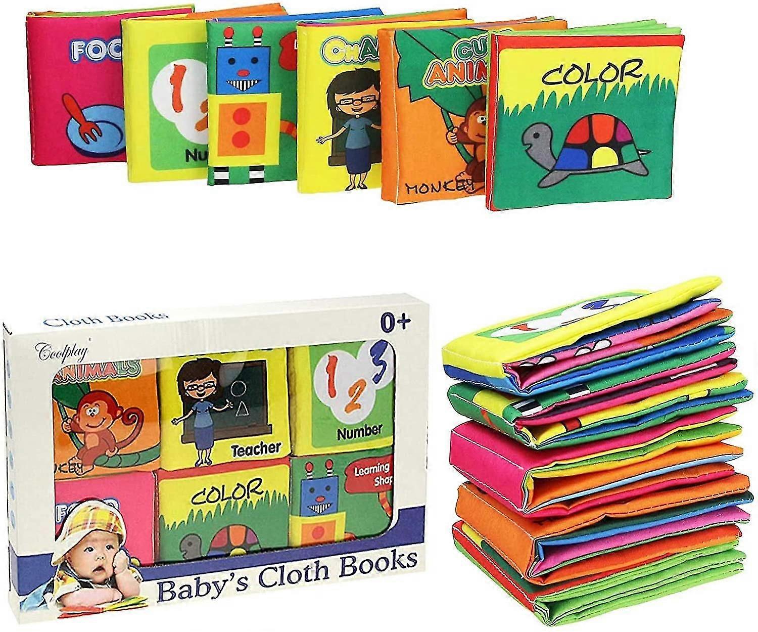 6pcs Baby's First Non Toxic Soft Cloth Book Set Squeak, Rattle, Crinkle,colorful