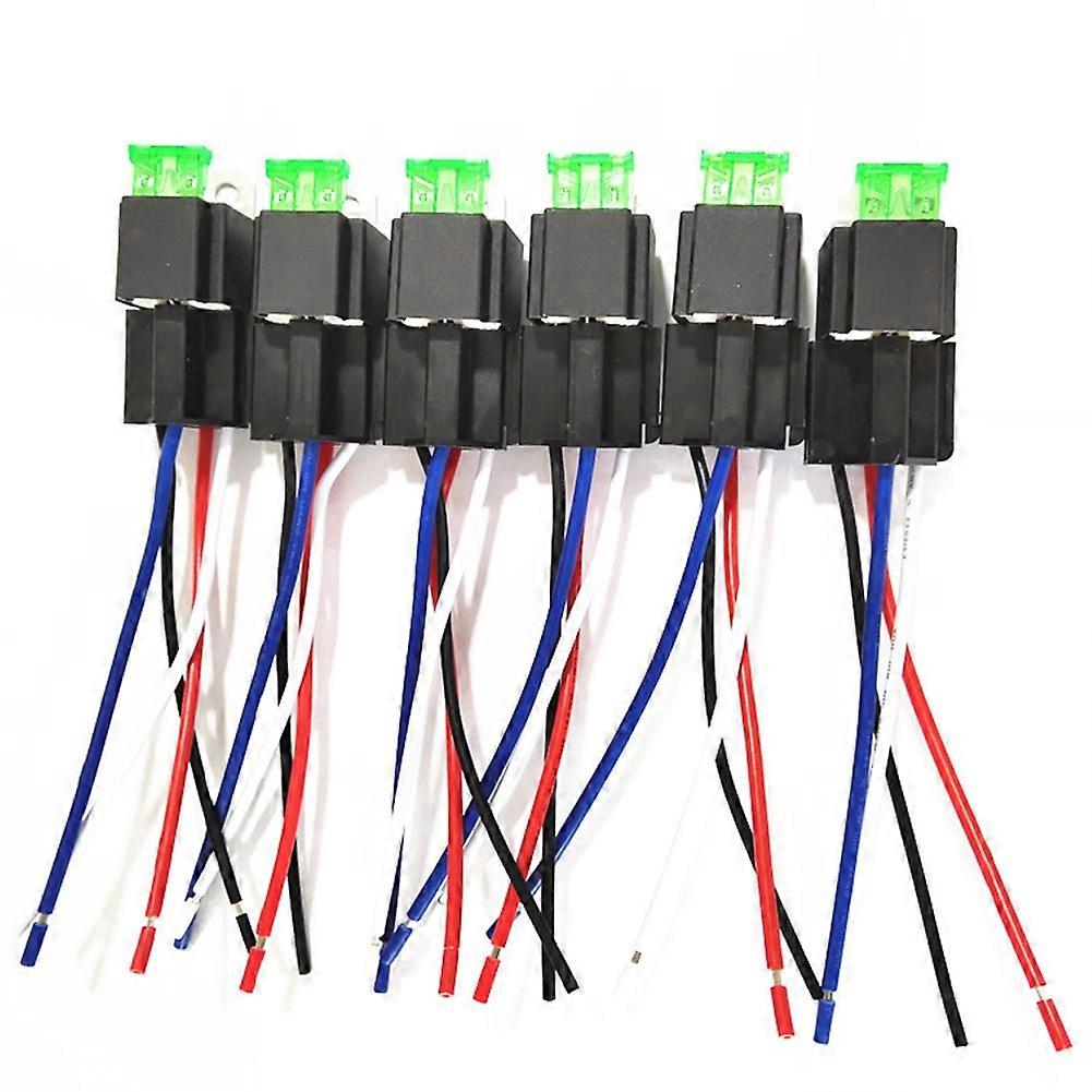 6PCS 30A 4 Pin Copper Terminal Auto Relay DC 12V Fused on/Off Car Motor Relay with Holder Socket on/Off Fused Relay