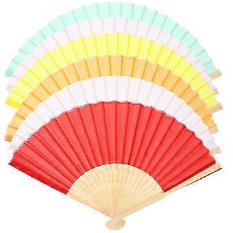 6pcs Elegant Handheld Folding Fans Multi Functional Cloth Design for Dancing, Weddings, Parties & Souvenirs Assorted Colors