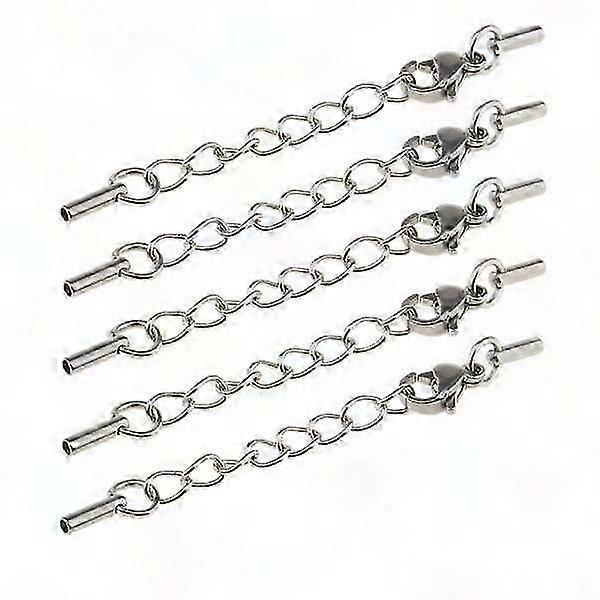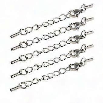 6x 5Pieces Round Leather Cord End Caps End Clasps with Lobester Clasp Extender