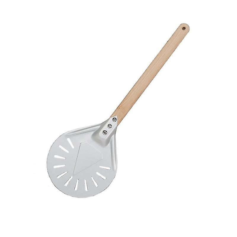 7" Round Perforated Pizza Crust Non-slip Aluminum Swivel Pizza Paddle With 16" Anti-scald Wood Handle