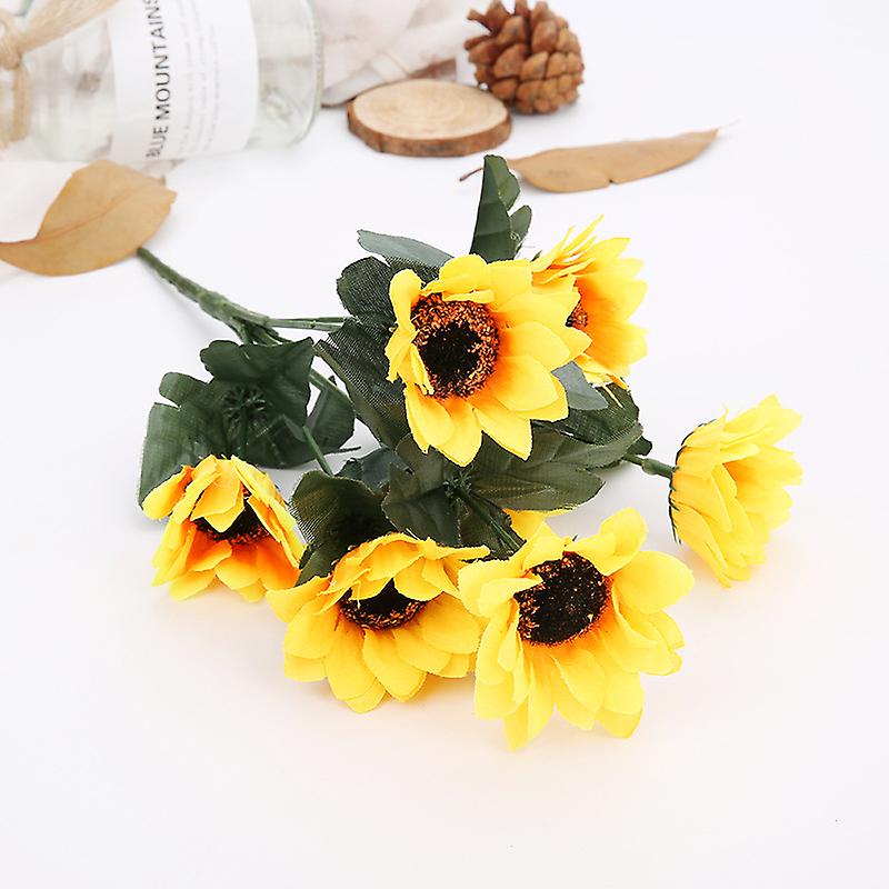 7 Heads Plastic Sunflower Artificial Flower Fake Flores Bouquet Simulation Plastic Flowers Decorate Party Wedding Decoration