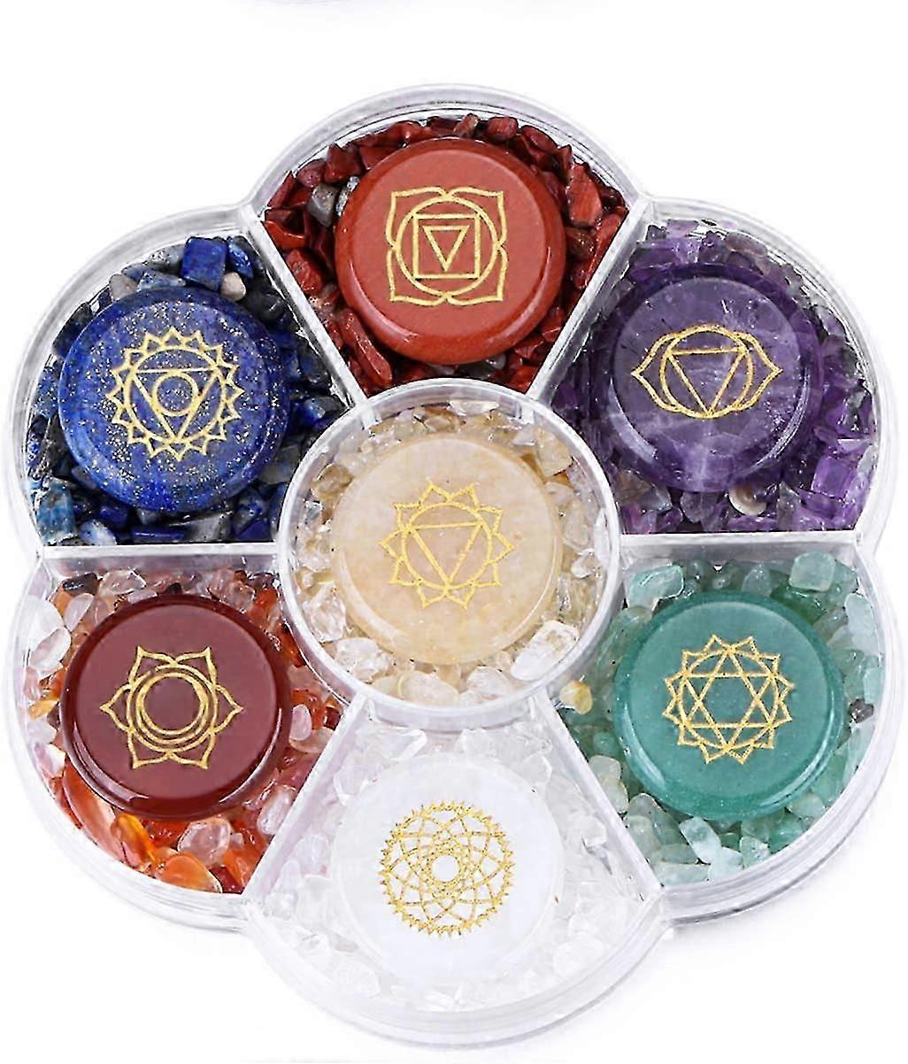 7 Chakra Reiki Healing Crystals and Stones Kit Chakra Symbols Polished Palm Gemstones Tumbled Chips Crushed Crystals Set of 7 for Yoga Meditation Ther