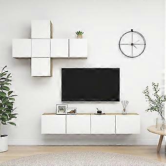 7 Piece Tv Cabinet Set White And Sonoma Oak Chipboard