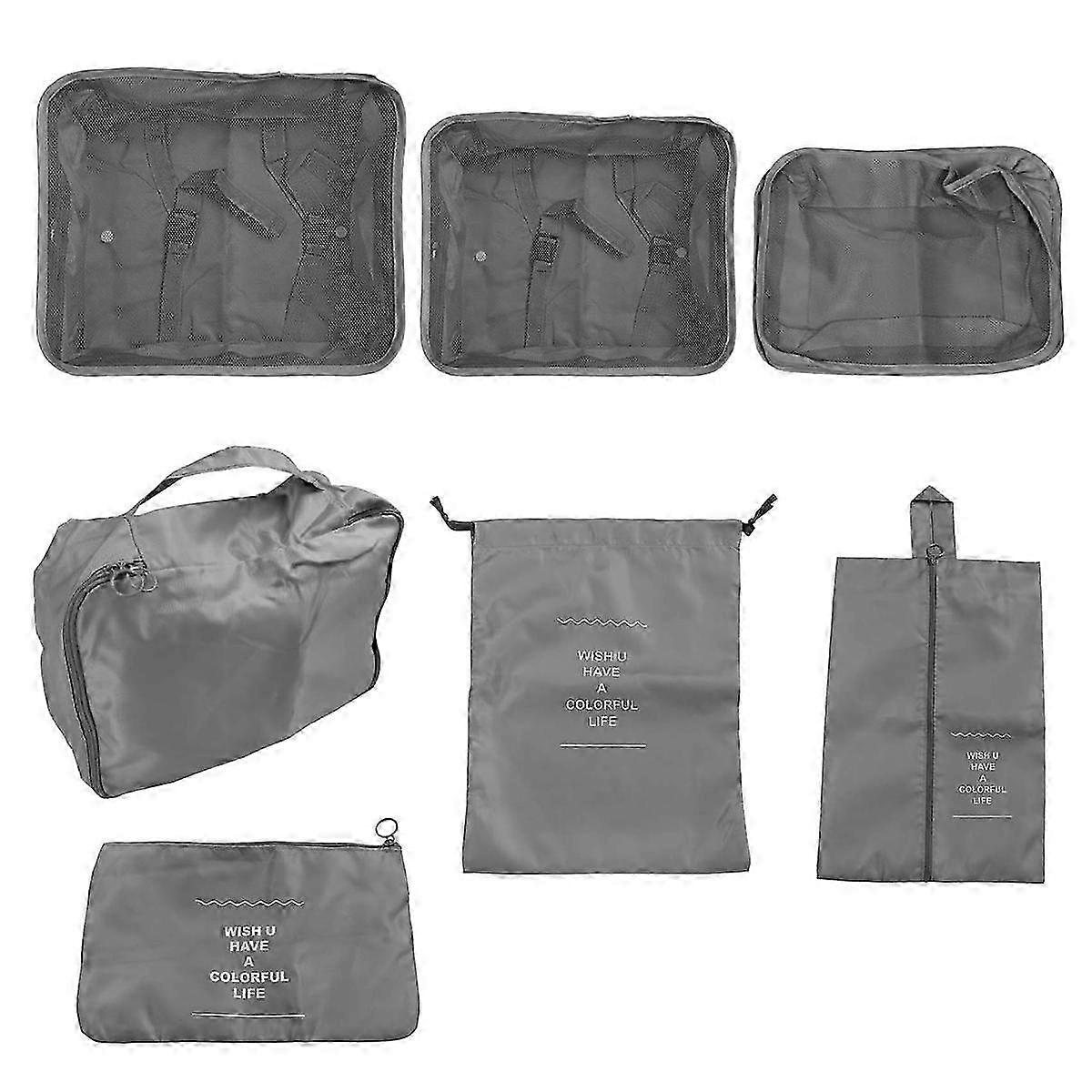 7pc Clothes Bag Set Packing Square Multifunctional Suitcase Organiser Suitcase Organiser Holiday Travel Square Grey