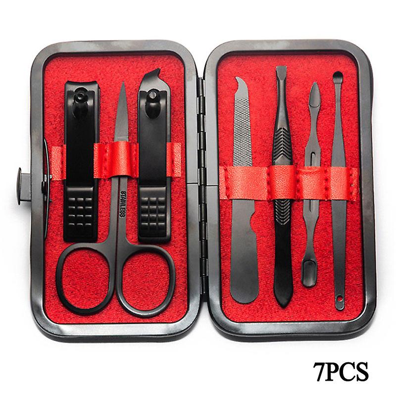 7pcs Black Nail Clippers Stainless Steel Nail Clippers Set Pedicure Manicure Tool