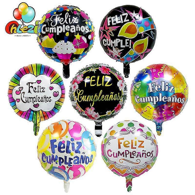 7pcs Spanish Happy Birthday Foil Balloons 18 Inch Round Helium Balloon Adult Birthday Party Decoration Kids Baby Shower Globos