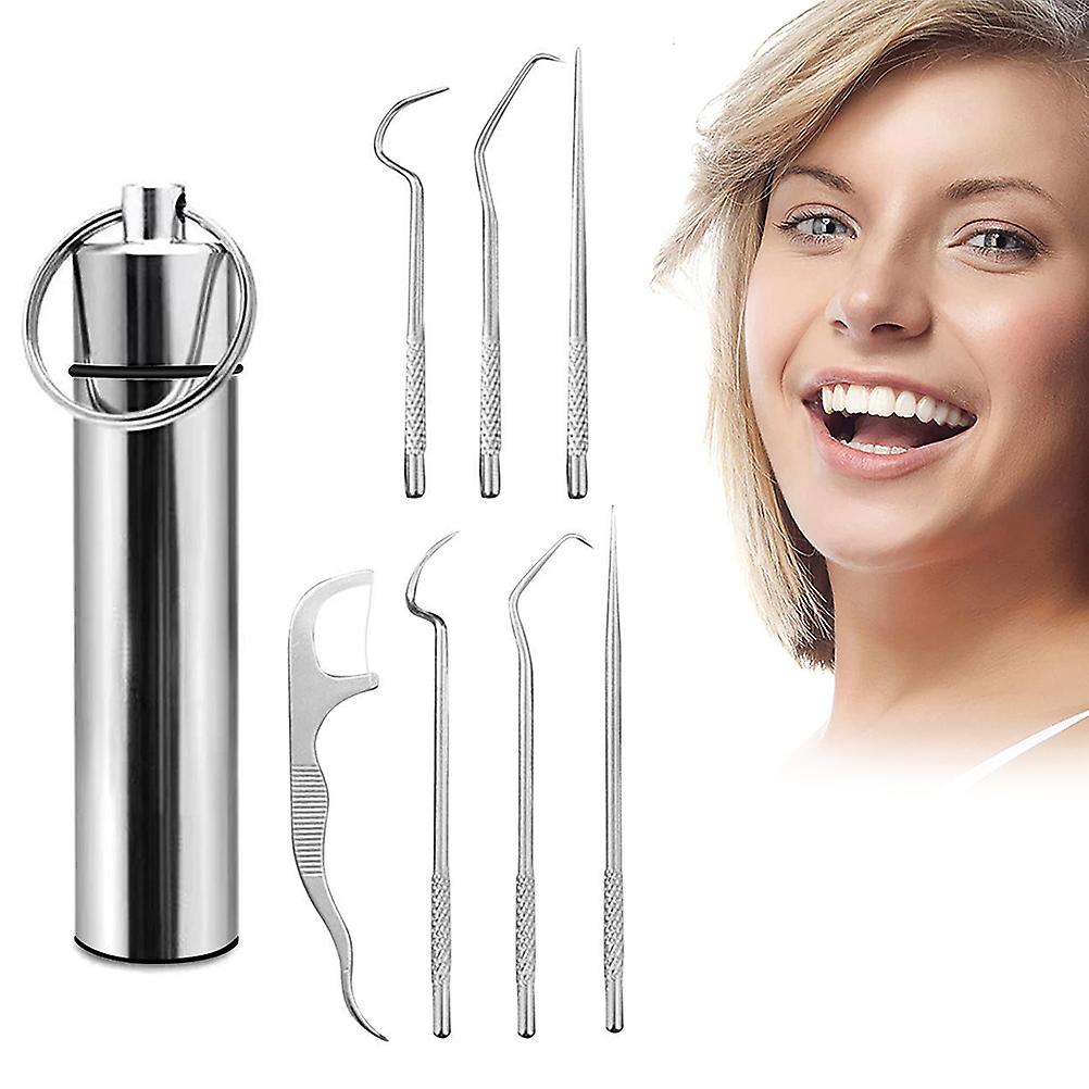 7Pcs Stainless Steel Toothpick Set Portable Reusable Metal Toothpicks Cleaning Kit with Holder for Outdoor Picnic Camping Traveling