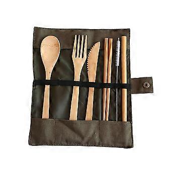 7pcs Flatware Cutlery Eco-friendly Bamboo Knife Fork Spoon Chopsticks Straw Set