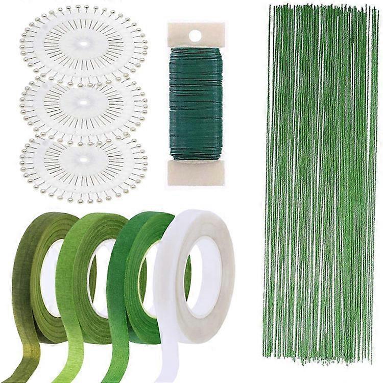 7 Pieces Florist Flower Decorating Tool Set 1.2cm Ribbon, 22 Gauge Flower Wire, 26 Gauge Flower Iron Wire And 100 Pieces Ball Head Pins