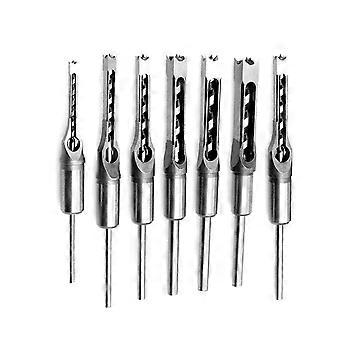 7pcs Square Hole Drill Bit Woodworking Hole Saw Mortising Chisel Steel Drill Bits Set 1/4 inch, 5/16 inch, 3/8 inch, 2/5 inch, 1/2 inch, 9/16 inch, 5/