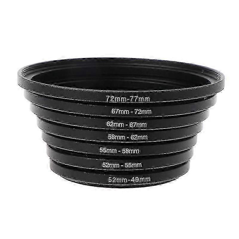 7pcs/set 49mm-77mm Universal Black Metal Aluminum Alloy Step-up Ring Common Camera Lens Adapter Filter Set Accessories