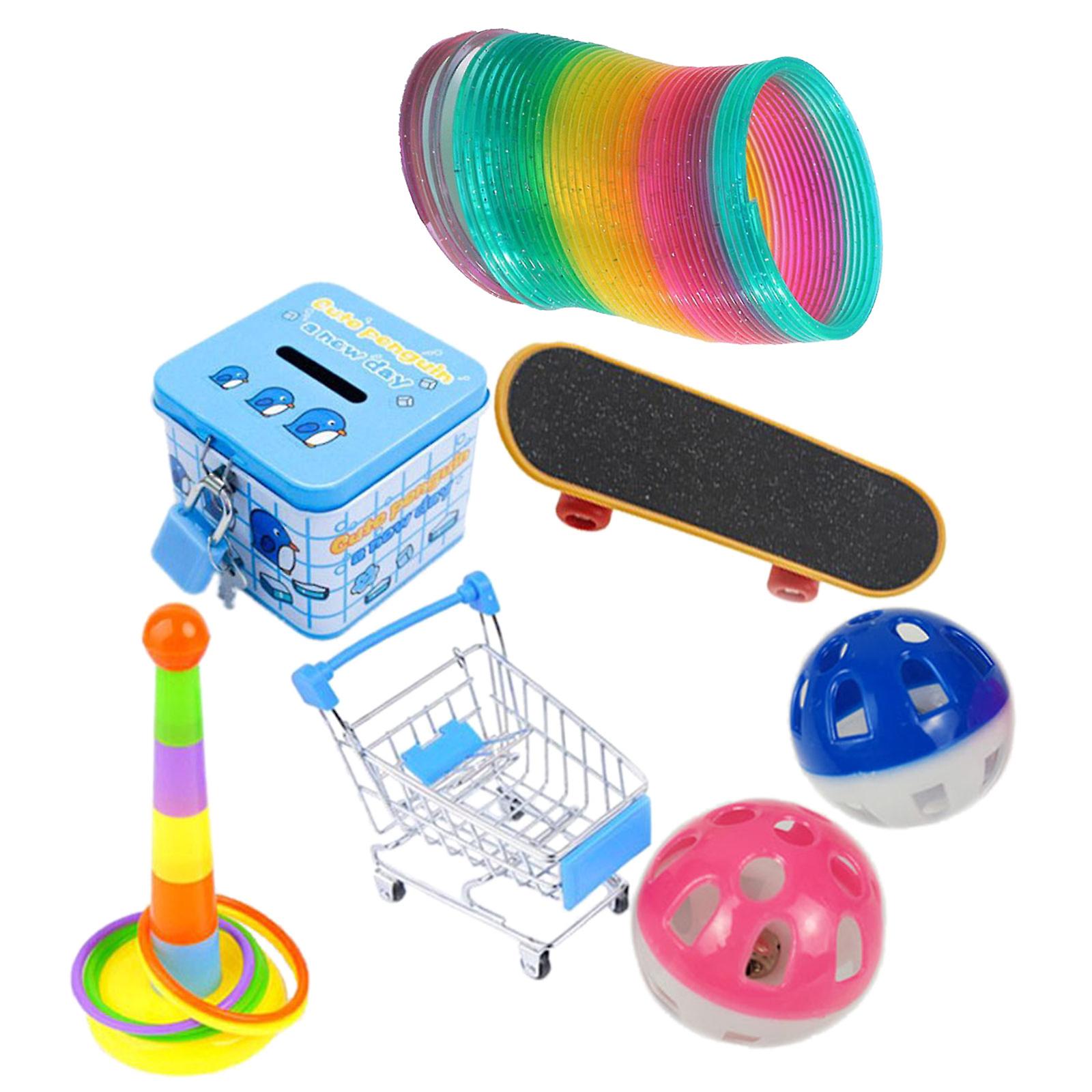 Features: Safe material: The colorful bird toys set is made of high quality plastic and metal. All these materials are eco-friendly, non toxic, durable and safe for your pet bird. Funny toys: This toy set is suitable for your little pets to for play and climb, help them relieve boredom and anxiety. Exercise toy: Encourage pets to exercise by establishing balance and coordination. They will love the toys. Suitable for: Fit for cockatoos, parakeets, conures, cockatiels, parrots and other small birds. 6 kinds of toys: The package contains 1 piece of bird trolley, 1 set of colorful stacking rings (need assembly), 1 piece bird skateboard, 1 piece rainbow spring coil, 1 piece coin jar, and 2 pieces bell balls. Specifications: Material: Plastic, Metal Color: Random Colors Size (Approx.): Bird Skateboard-14x4.5cm/5.51x1.77in Trolley Toy-11.8x8.5x11cm/4.64x3.35x4.33in Stacking Toy-Height 16cm/6.30in, Ring Diameter 5.5cm/2.16in Rainbow Spring Coil-8.6x9cm/3.38x3.54in Coin Jar-7x7x6cm/2.75x2.75x2.36in Weight: Approx.332g Note: 1.Please allow 0-1cm error due to manual measurement. pls make sure you do not mind before you bid. 2.Due to the difference between different monitors, the picture may not reflect the actual color of the item. Thank you! Package includes: 1 Piece Bird Skateboard 1 Piece Bird Stacking Toy with 5 Rings (Need Assembly) 1 Piece Trolley Toy 1 Piece Rainbow Spring Coil 1 Piece Coin Jar 2 Pieces Bell Ball (Toys are in Random Colors)