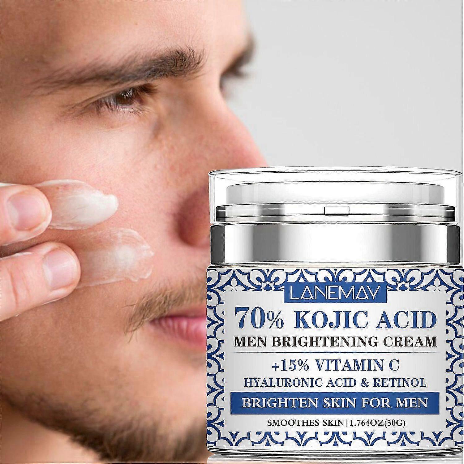70% Kojic Acid Men's Brightening Cream with Vitamin C, Hyaluronic Acid & Retinol Skin Lightening, Hydration & Anti-Aging, 50G Non-Greasy Formula for